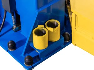 One of the immediate benefits of a baseless lift is that there are no obstructions on the floor so you can use a transmission jack with ease without having to overcome moving it across a baseplate.