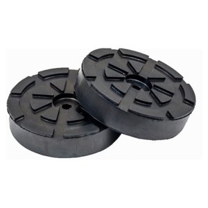 Lift pads are located at the end of each arm of a two-post lift, either hooked over or screwed to a metal plate. There is a wide variety of lift pads on the market, so selecting the correct one for your lift is essential.