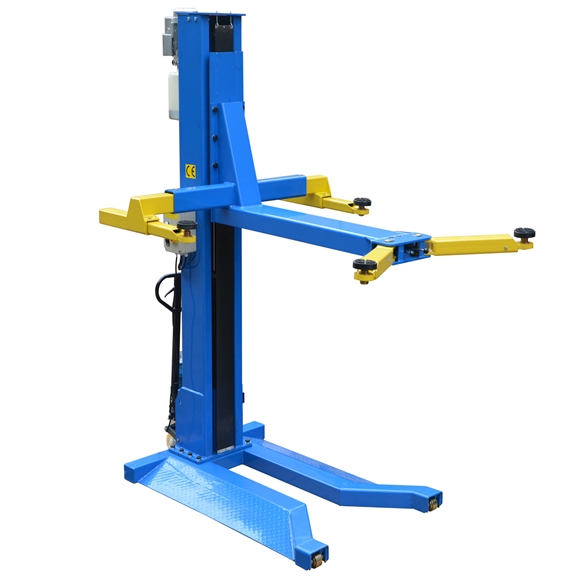 E4G SML-3000 Mobile Single Post Lift offers improved lifting capacity of 3 tons, making it perfect for garages with limited space. Its adjustable pad and arms, along with safety features like mechanical self-lock release and two levels of safety, ensure convenience and reliability for servicing various vehicles.